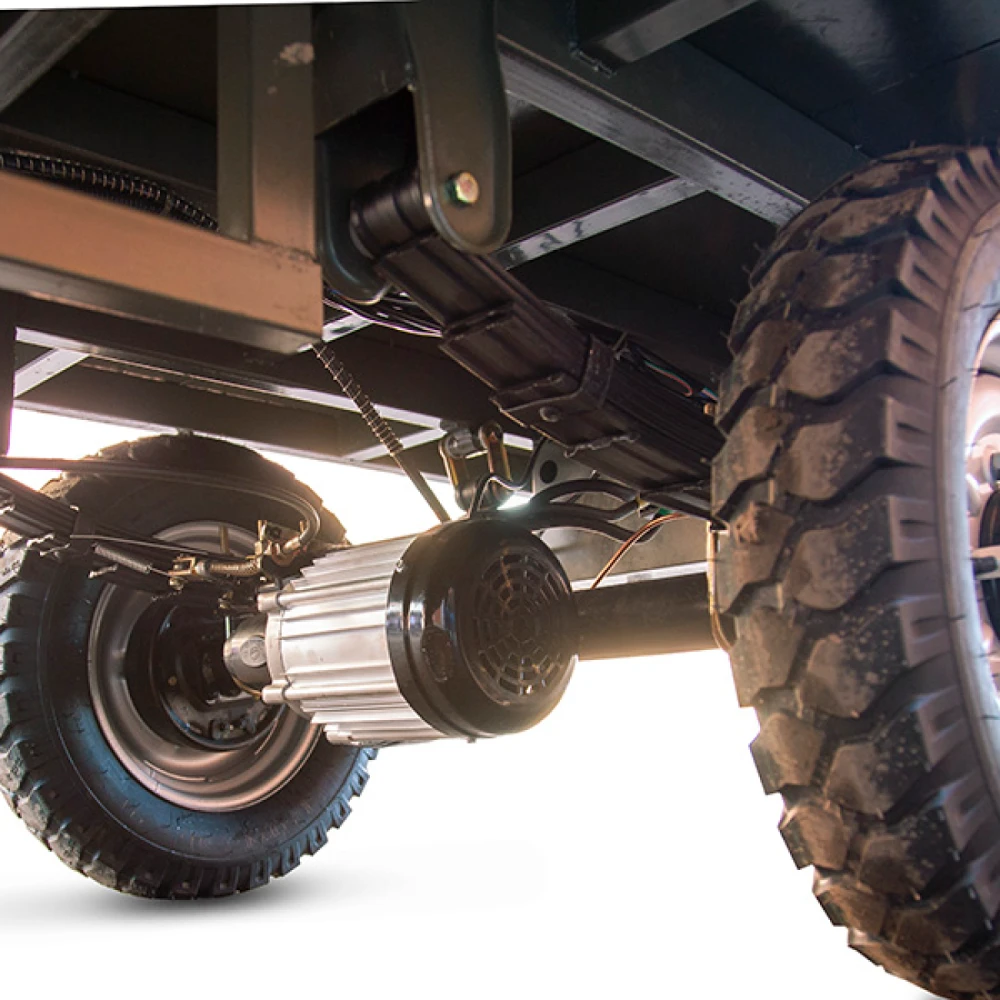 Техника оснащена бесщеточным редукторным электродвигателем мощностью 1800 Вт позволяют разогнаться до скоростных показателей 25 км/час .