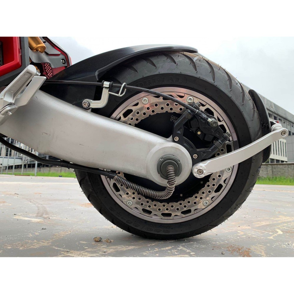 Модель весом 105 кг, способна развивать скорость до 100 км/час. В сочетании с емким АКБ передвижение вместе с байком превращается в длительное экстремальное путешествие, насыщенное массой положительных эмоций. Качественная тормозная система, надежные крылья, амортизационная часть делают езду безопасной, скоростной и плавной.