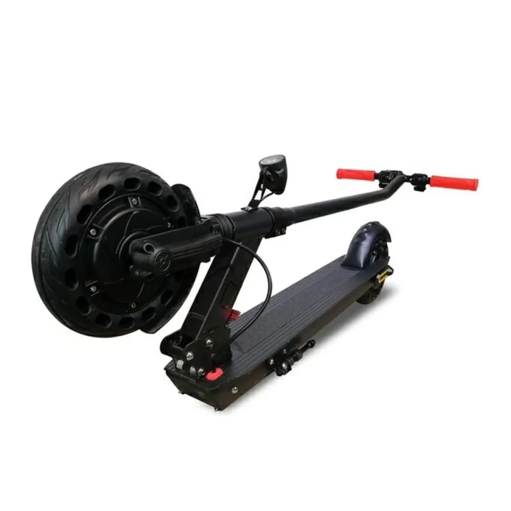 Электросамокат iconBIT Kick Scooter Street DUO в черном цвете изготовлен в классическом дизайне. При первом ознакомлении выглядит эргономично и минималистично. Пользователи не ошибаются. С учетом складной конструкции электросамокат одним движение руки приобретает компактные размеры.