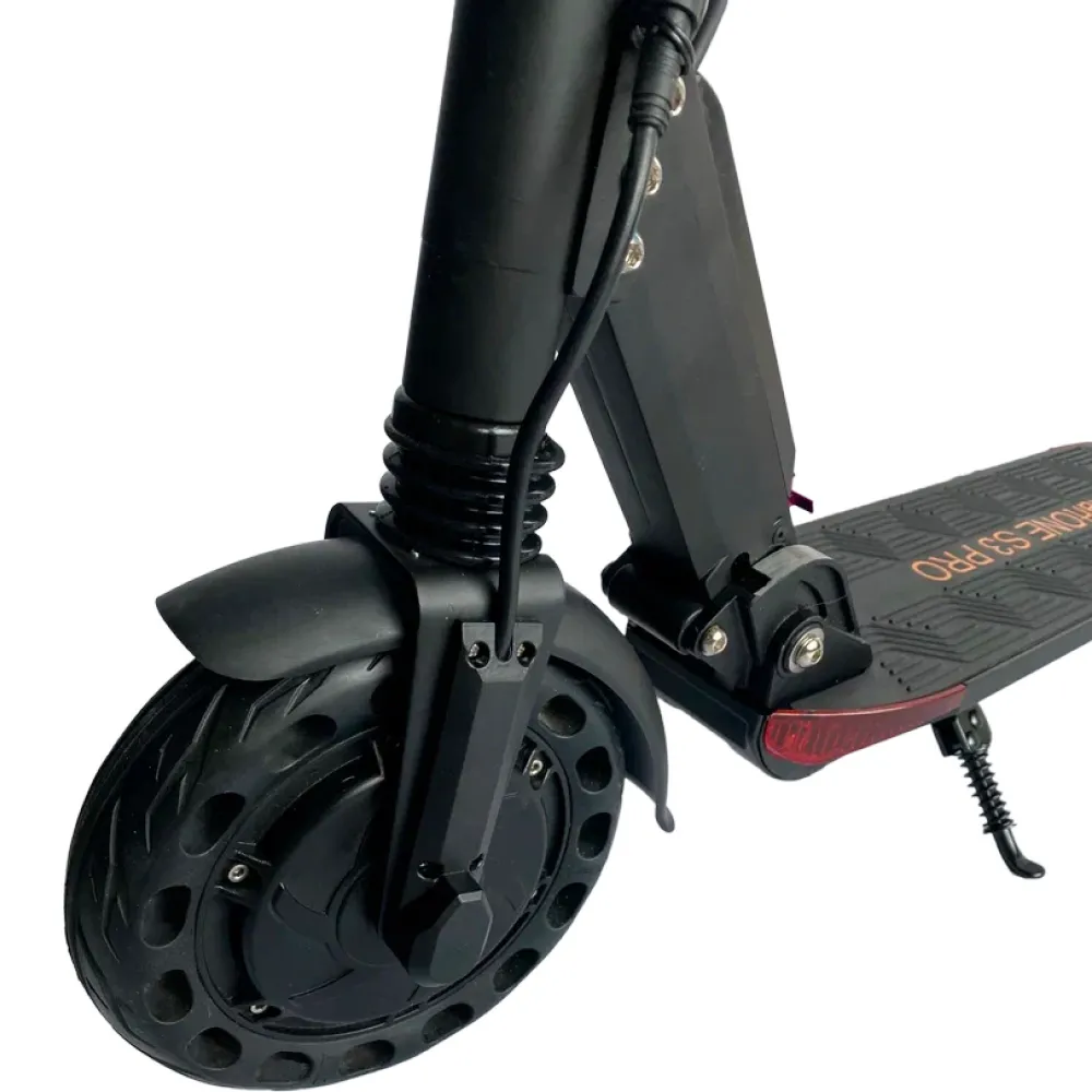 Техника выполнена в классическом дизайне, заметная на фоне аналогичных тс. Надежность, прочность и долговечность материала изготовления позволили пользоваться электросамокатом в жестких условиях эксплуатации. Техника послушна и проста в управлении. Оснащена двигателем 350 Вт, который вместе с емкой батареей обеспечивает запас хода до 25 км и максимальную скорость до 30 км/час.