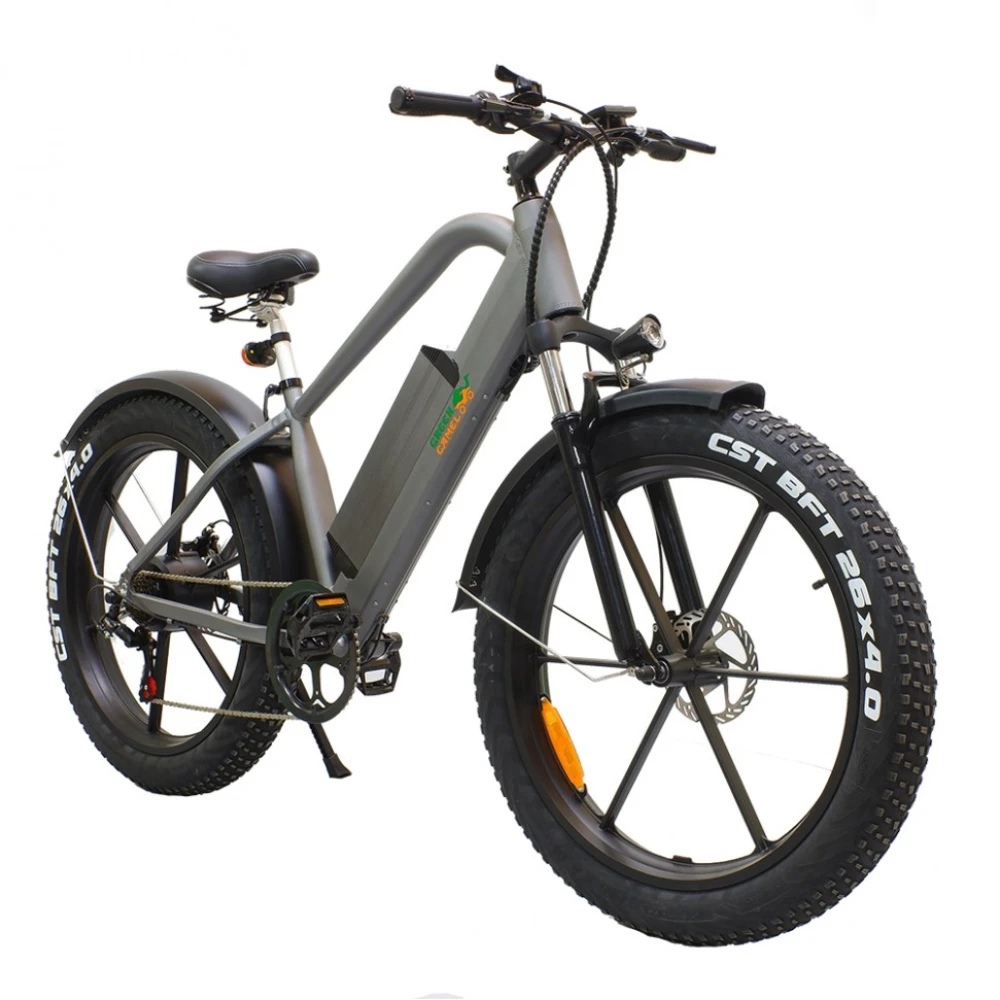 Купить Электровелосипед Грин Кэмэл Хищник (R26FAT 500W 48V 10Ah) Алюм, 6скор в сером цвете стал несомненным лидером продаж. Модель выглядит строго и модно одновременно. От техники исходит сила и мощь. Велик создан для любителей высокой скорости и выброса адреналина. Покупка электровелосипеда сделает отдых разнообразным, поможет забыть о проблемах прошедшего дня и ощутить, что такое порыв свежего воздуха.
