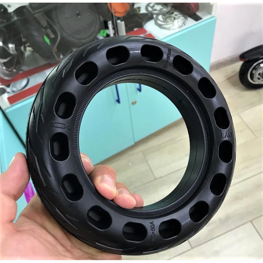Нередко большой проблемой для любителей электросамокатов становятся мелкие проколы из-за неровностей на дорогах. Бескамерная покрышка для переднего мотор-колеса позволит Вам практично подойти к решению данного вопроса. Выполненная из износостойкой резины, она обеспечит вашему самокату высокую маневренность, повысит его устойчивость и позволит кататься даже по легкому бездорожью.